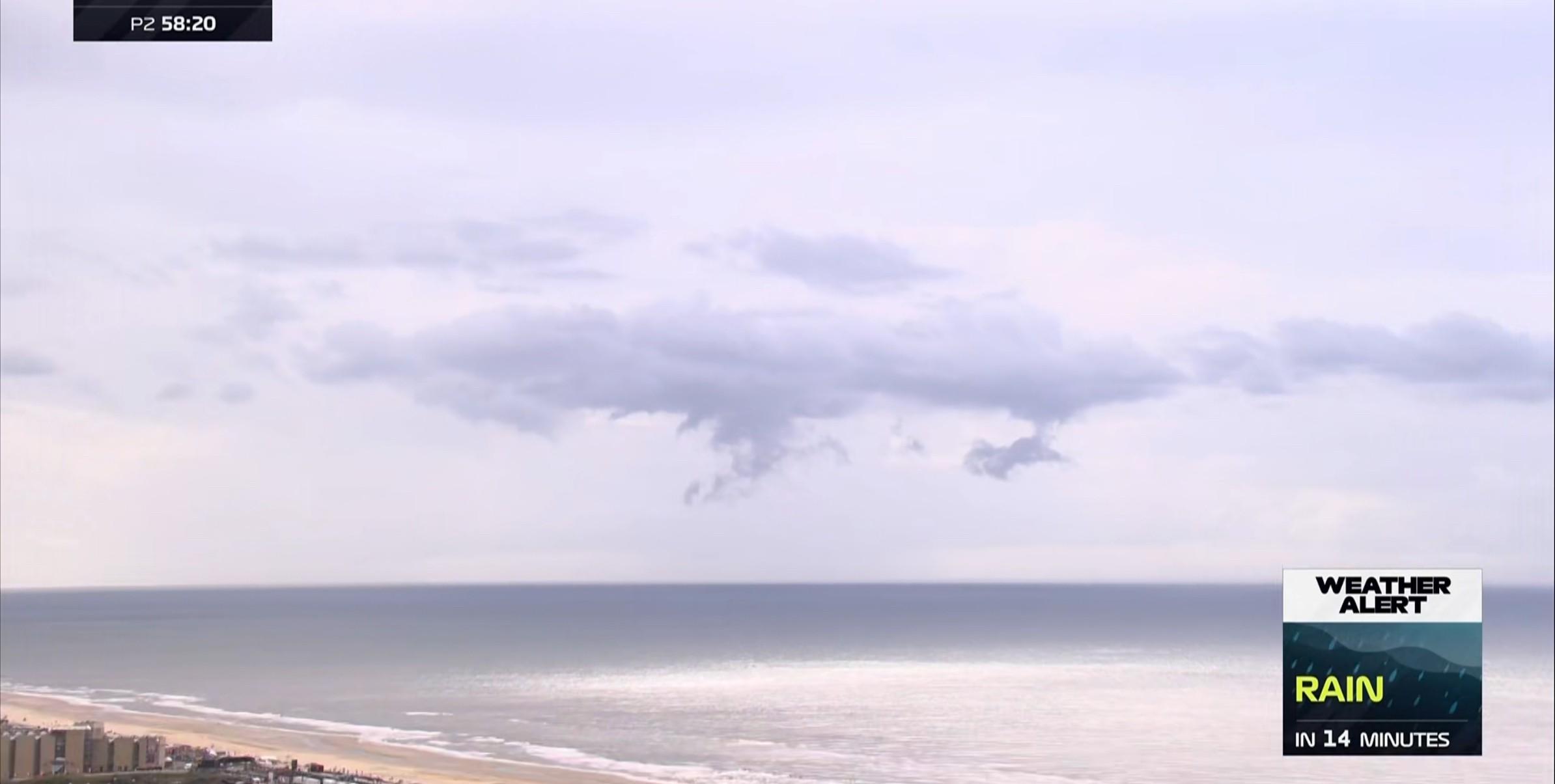 二练起表,官方给出预测,14分钟后赛道将出现降雨的情况;