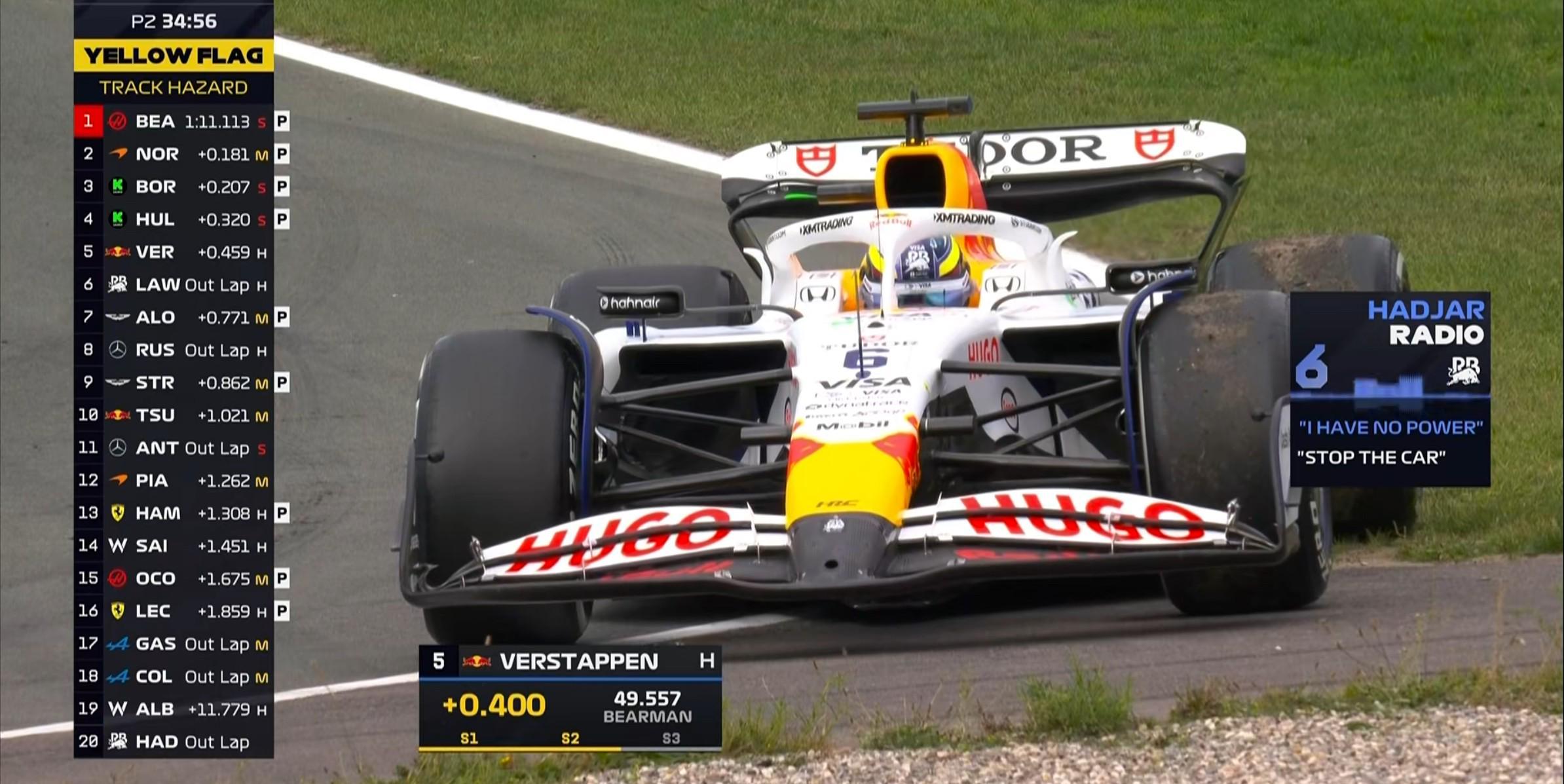 哈贾尔的赛车出现丢失动力的状况,赛车停在了赛道旁,赛会出示虚拟安全车;
