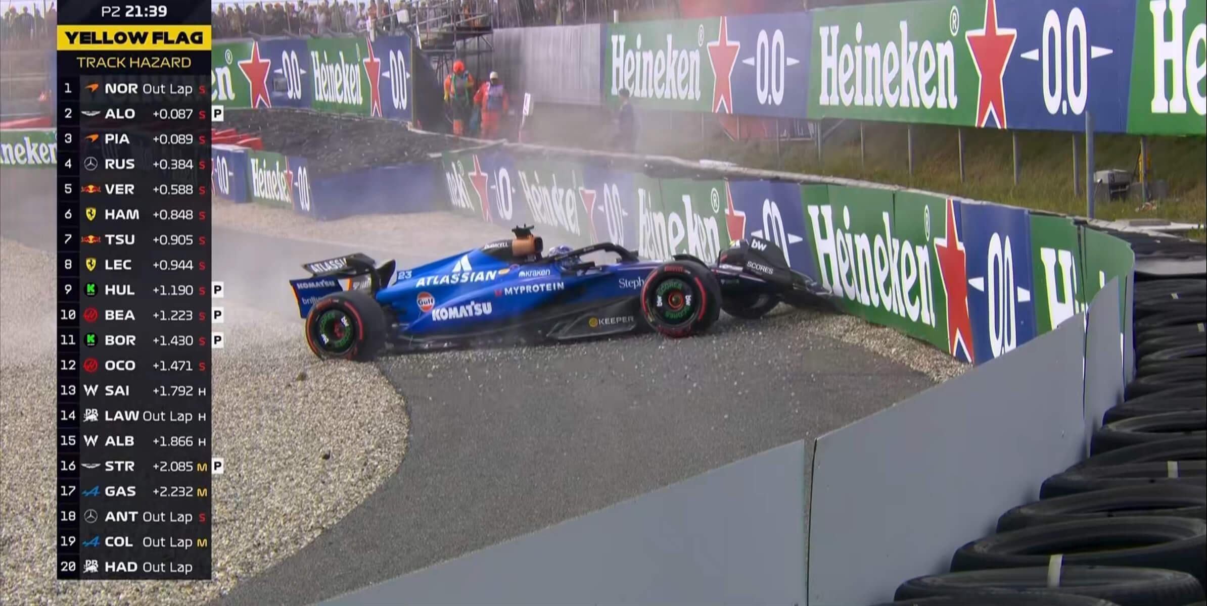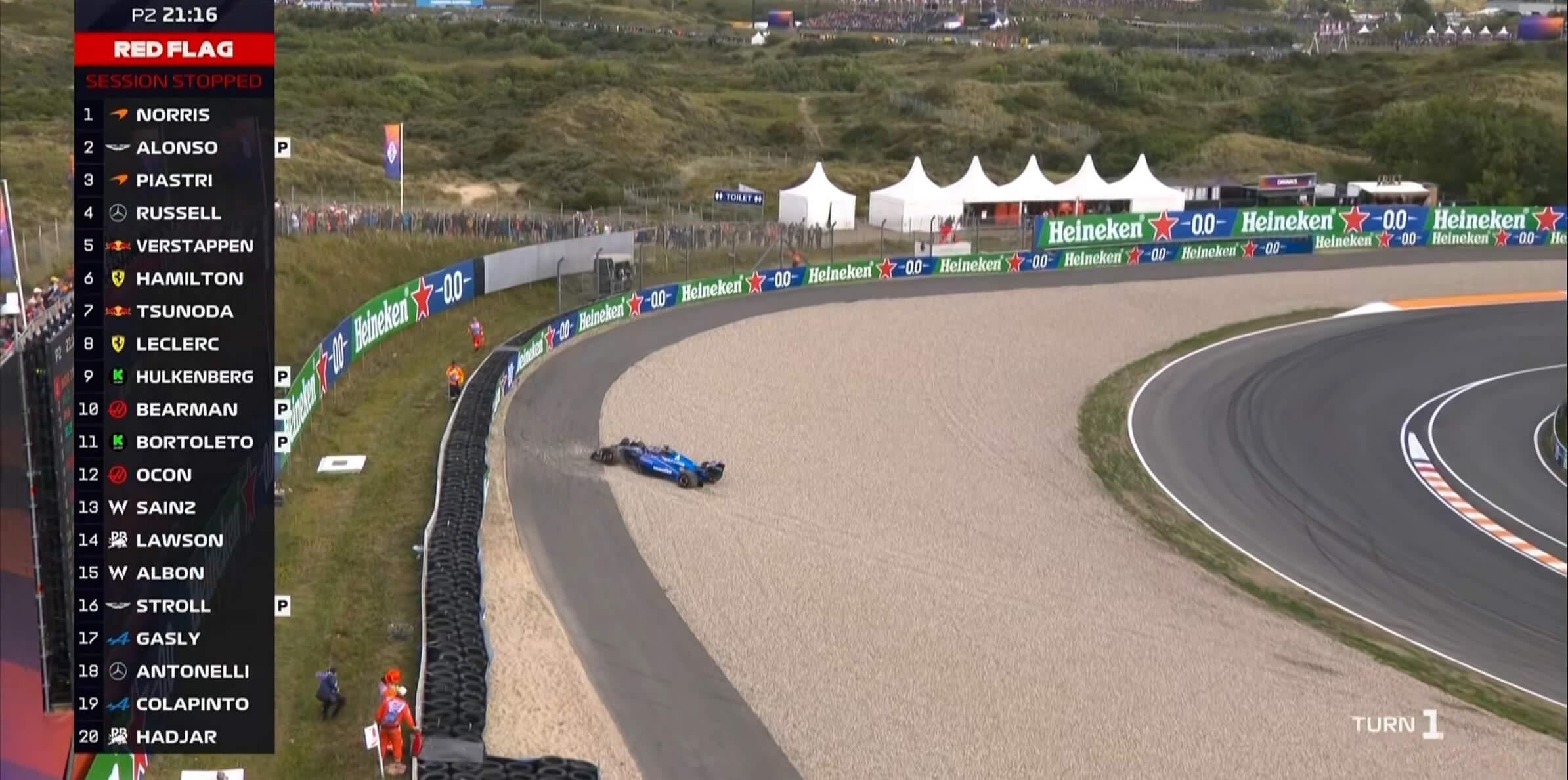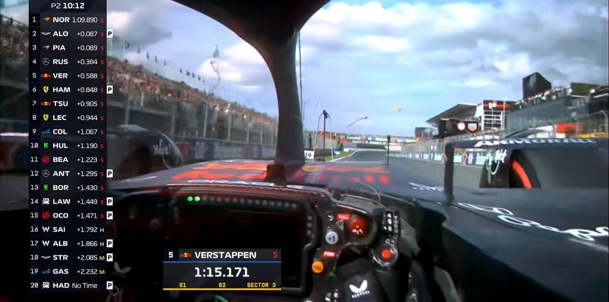 F1荷兰站二练:诺里斯全场最快,阿隆索第2,汉密尔顿第6