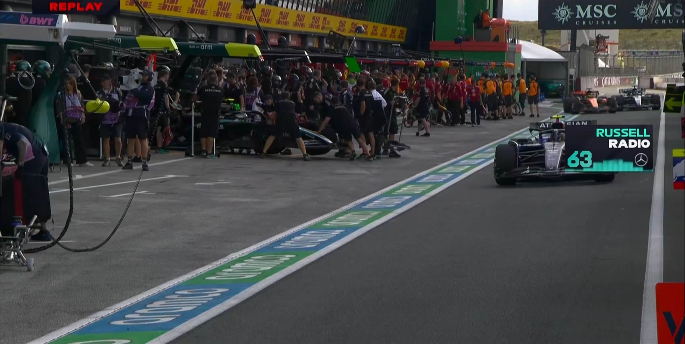 皮亚斯特里在即将拐入停车格时,又向左打了一把方向,导致后方的拉塞尔与其发生轻微碰撞,赛会干事对此进行了记录;