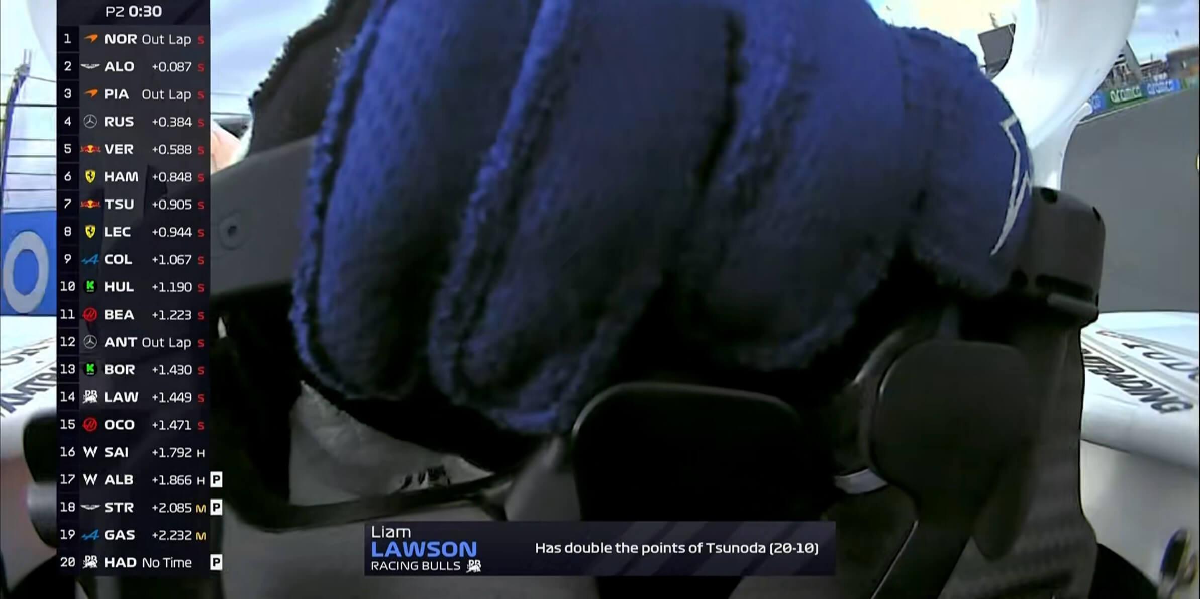 官方字幕:劳森在今年的积分(20分)是接替他大红牛席位角田裕毅的一倍;