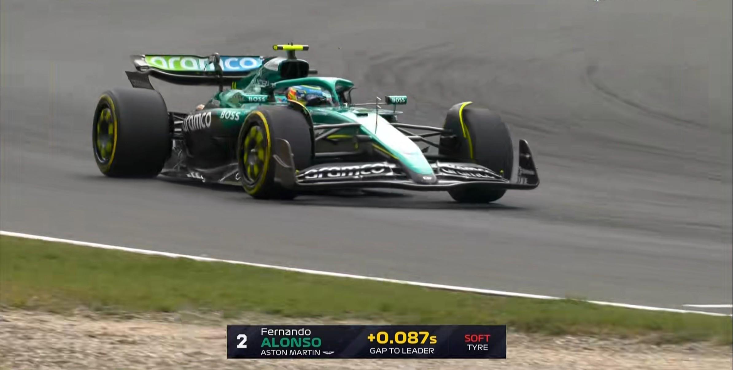二练进入最后10分钟,多数车手开启长距离测试,诺里斯的软胎成绩位于榜首,阿隆索排在第2;